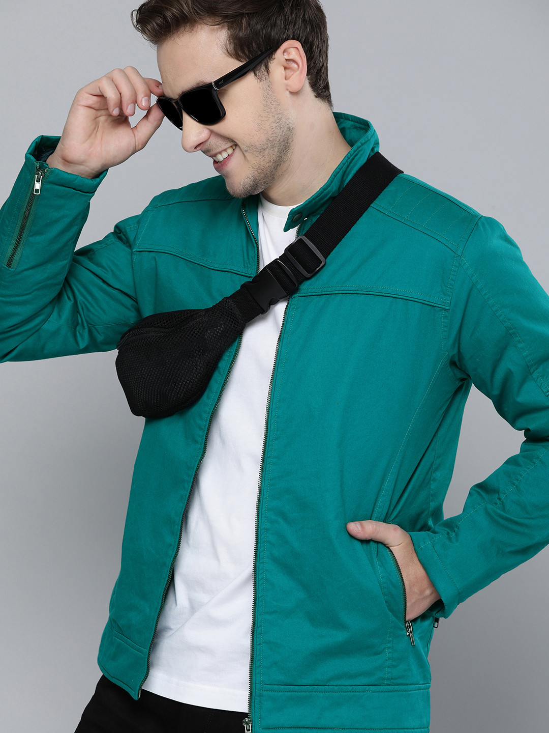 Men Green Solid Bomber Jacket