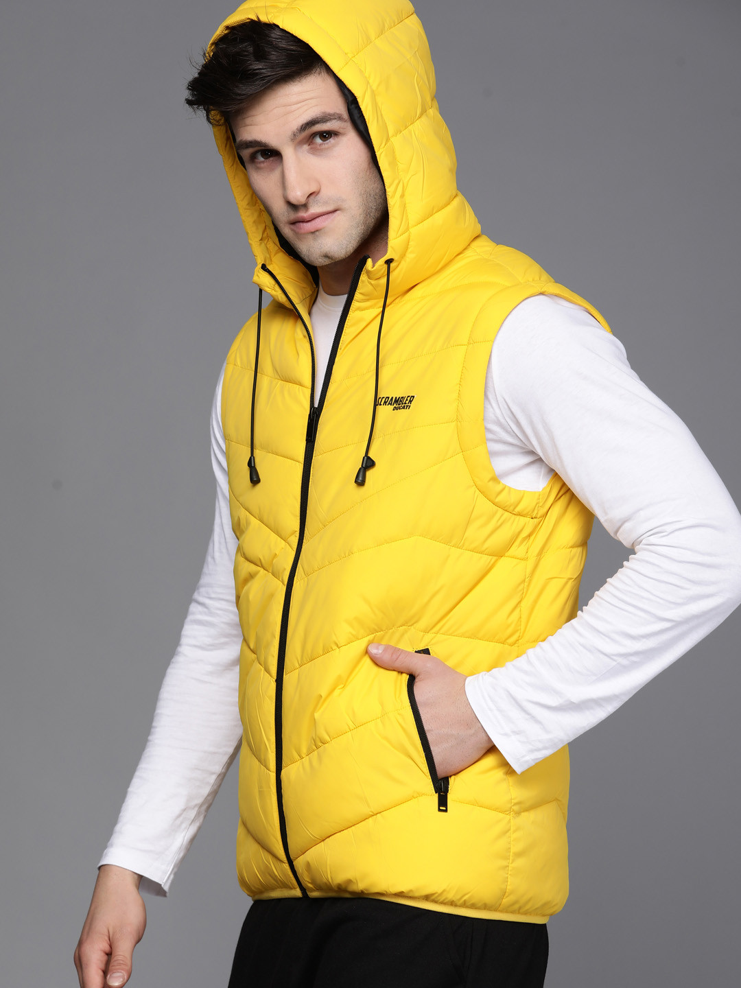 Men Yellow Solid Padded Jacket