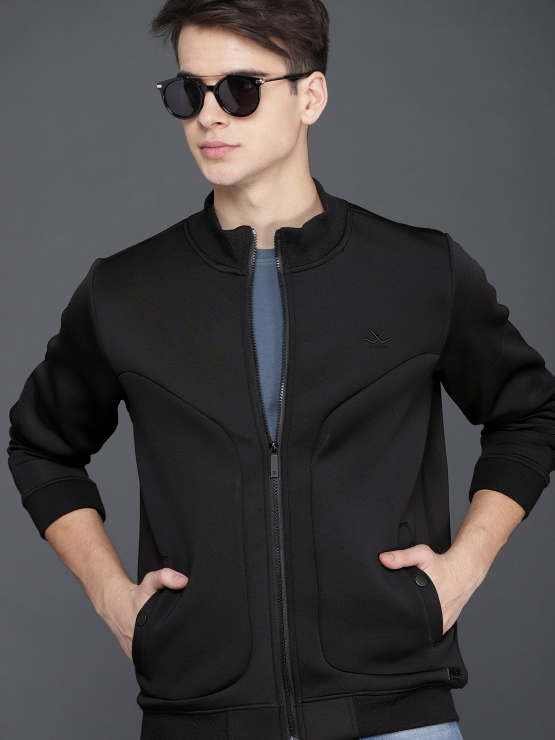 Men Black Solid Bomber