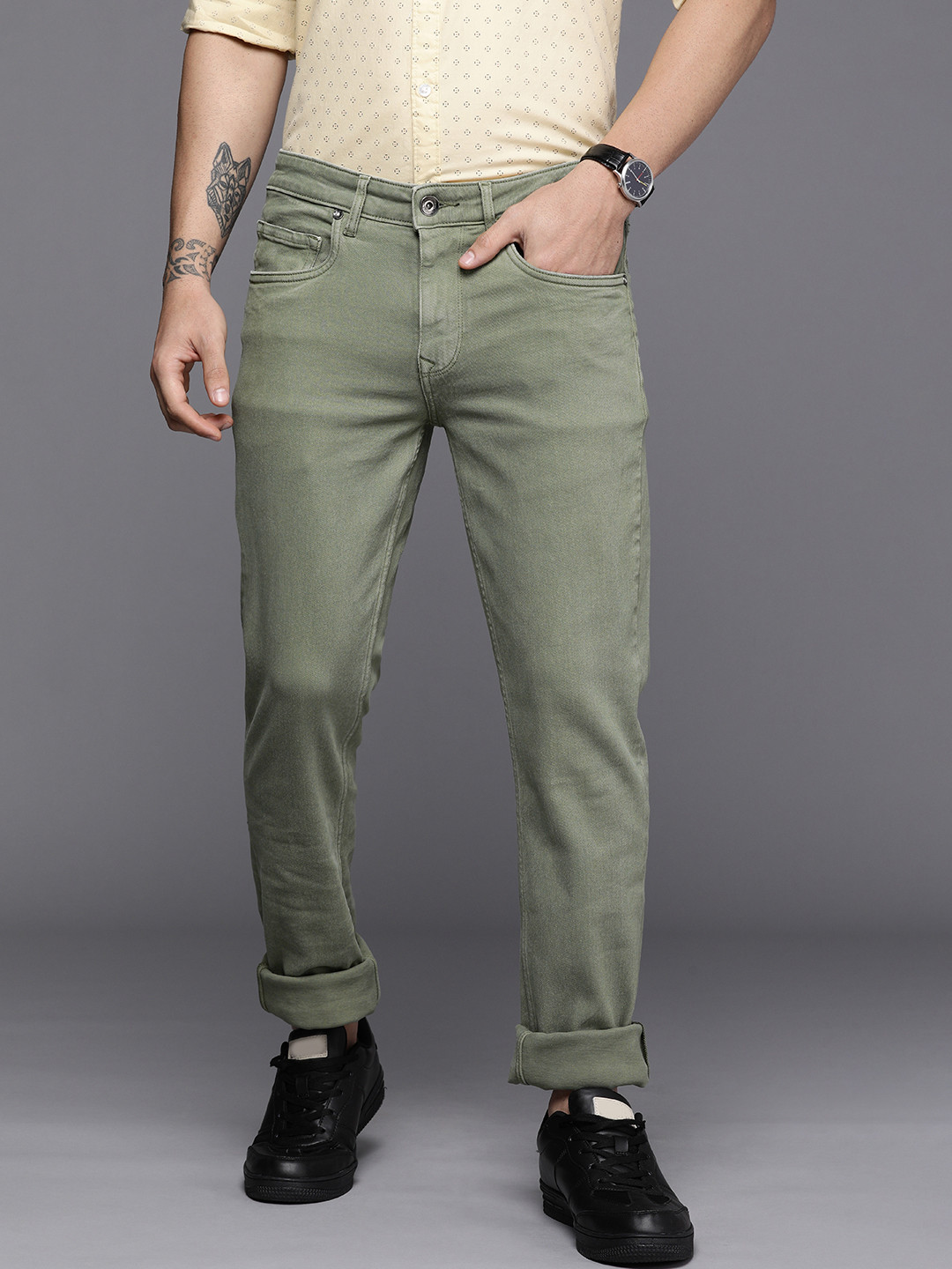 Men Olive Green Jeans